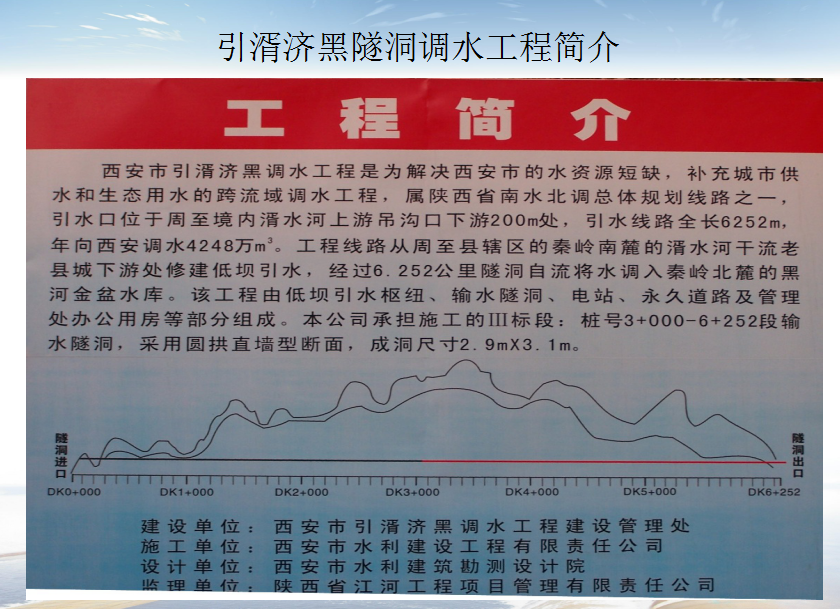 該工程屬陜西省南水北調總體規(guī)劃線路之一,引水口位于周至境內湑水河上游吊溝口下游200m處,引水線路全長6252m,年向西安調水4248m3。由低壩引水樞紐、輸水隧洞、電站、永久道路及管理處辦公用房等部分組成。