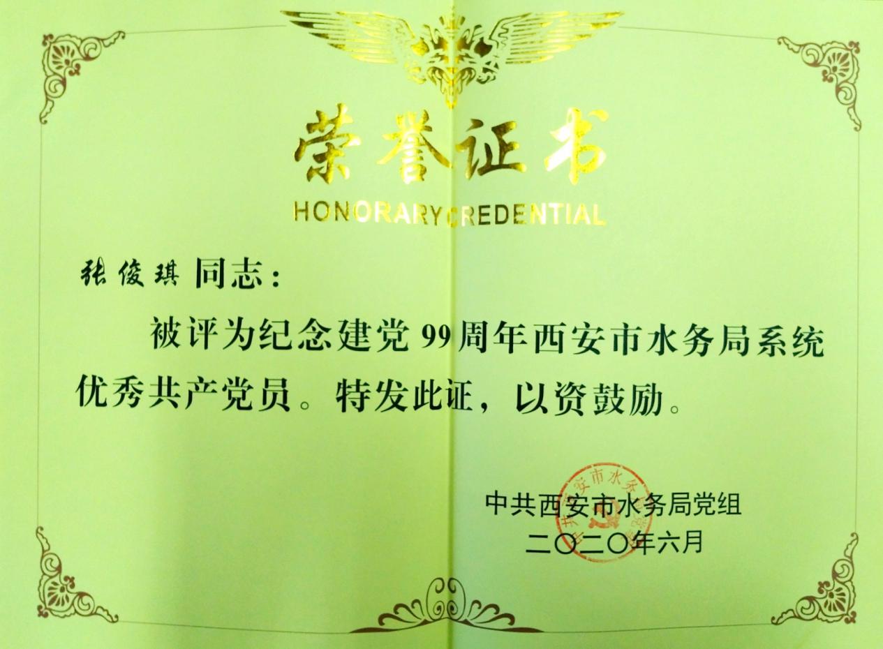 我單位張俊琪同志和高曉莉同志被市水務(wù)局黨組評(píng)為優(yōu)秀共產(chǎn)黨員。